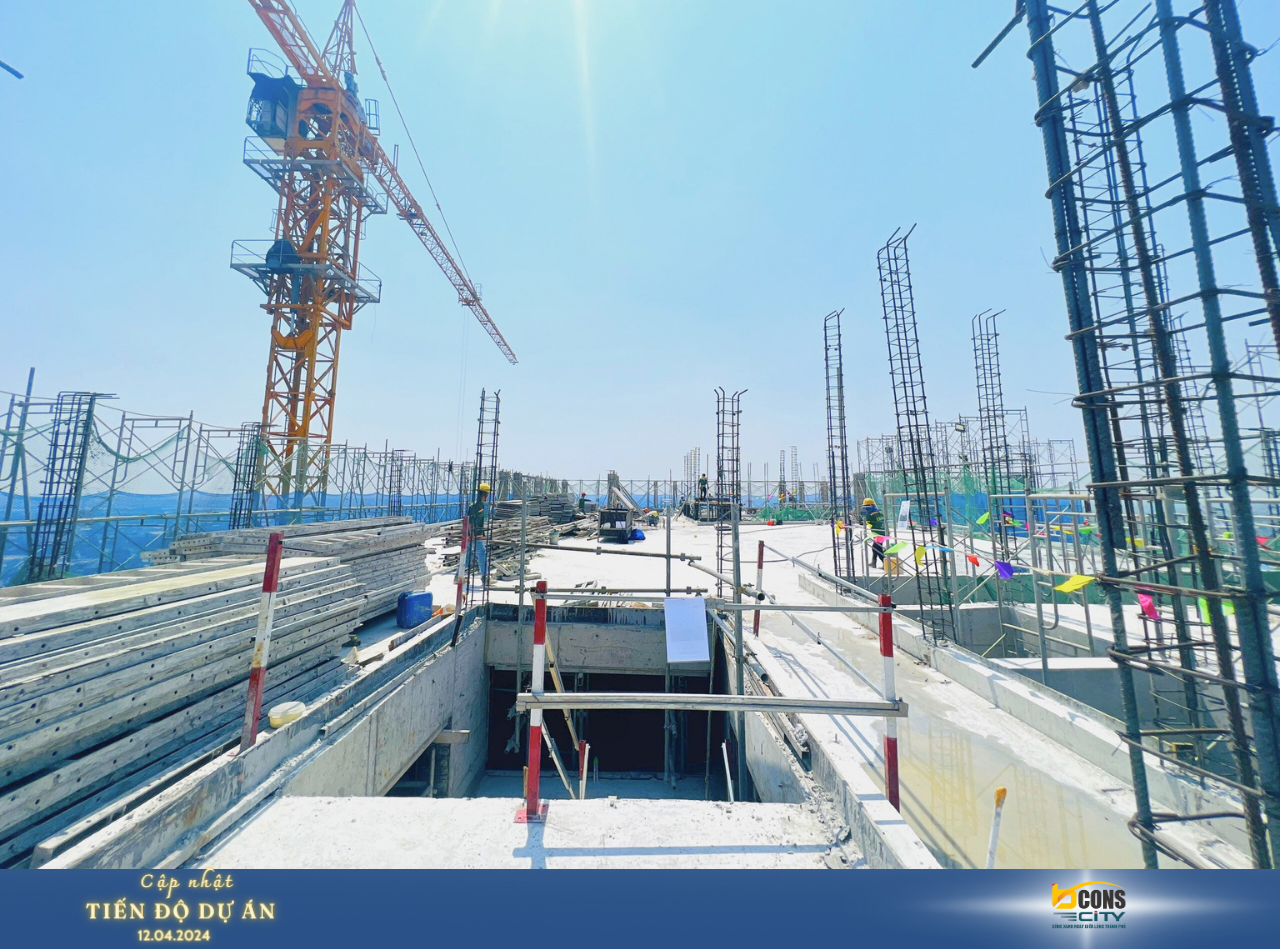 Tập đoàn Bcons cập nhật tiến độ thi công dự án Bcons City – Tháp Green Topaz ngày 12/04/2024: đang thi công: