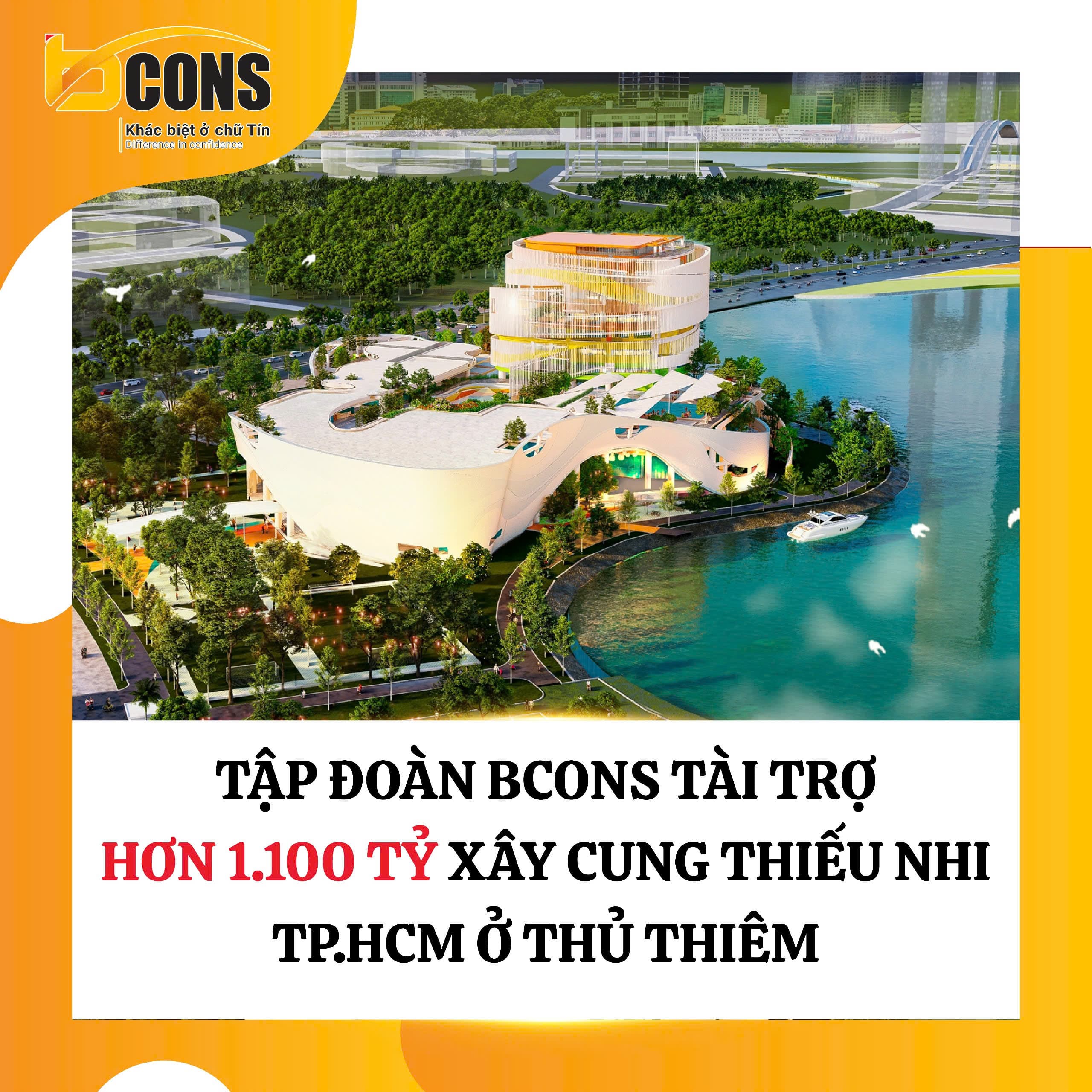 Công trình Cung thiếu nhi TP.HCM ở Khu đô thị mới Thủ Thiêm được Tập đoàn Bcons tài trợ theo hình thức “chìa khóa trao tay”, thời gian thiết kế và thi công 15 tháng.Nguồn thông tin tổng hợp từ bconsgroup.vn và các website chính thức của chủ đầu tư Bcons.